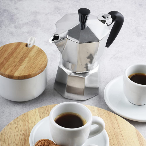 La quantità della vostra bevanda si misura in tazze di espresso. Qui vi offriamo una BIALETTI MOKA EXPRESScon capacità di 50 ml, 100 ml, 150 ml, 300 ml, 400 ml e 600 ml.