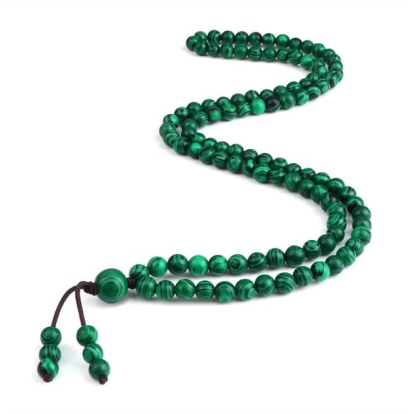 Il braccialetto mala è una tradizione tibetana ancestrale che viene utilizzata tanto nella vita quotidiana quanto negli sforzi spirituali. Realizzato con 108 perle naturali, questo braccialetto di malachite ha molti benefici. Questa pietra aiuta a ridurre gli stati infiammatori, a migliorare la comunicazione, a sviluppare la fiducia in se stessi e a ridurre lo stress e l’ansia.