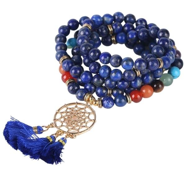 Il bracciale mala, noto anche come japamala, è un gioiello spirituale della più pura tradizione tibetana. Composto da 108 perline, questo accessorio viene utilizzato per la preghiera, la meditazione o come portafortuna.