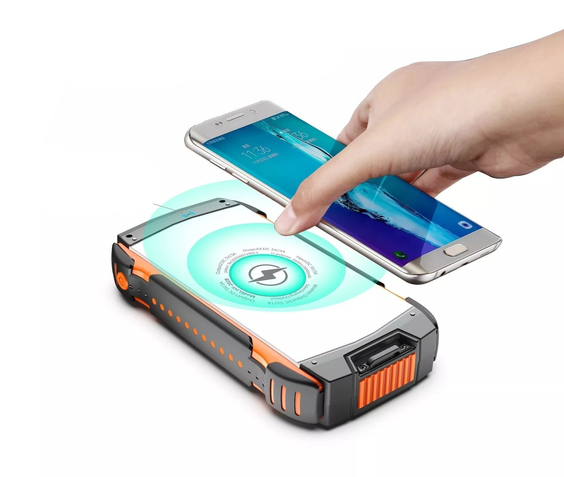 Il power bank solare ha una funzione wireless, il power bank è compatibile con la maggior parte dei dispositivi compatibili con il caricatore wireless.