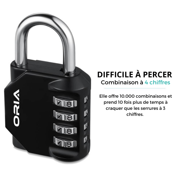 Il furto di oggetti dagli armadietti dell’ufficio o dalle borse da viaggio è comune. L’utilizzo di un lucchetto MASTER LOCK PADLOCKè molto più sicuro del modello a 3 cifre. Questa serratura a 4 cifre è forte e difficile da scassinare.