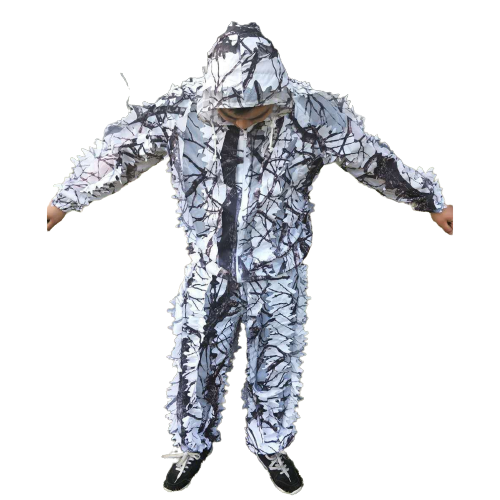 Un costume militare da cacciaè un insieme di indumenti progettati per aiutare i cacciatori, i soldati e gli escursionisti a mimetizzarsi con l’ambiente invernale, proteggendoli al contempo dalle intemperie. Di solito è composto da pantaloni e da una giacca in materiale resistente all’acqua, all’abrasione e al freddo con un motivo mimetico stampato. I costumi possono anche includere accessori come guanti, cappelli e stivali abbinati.