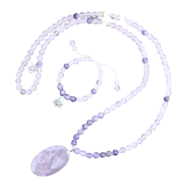Confezione Collana + Bracciale con maglia scorrevole: Ametista, Quarzo rosa