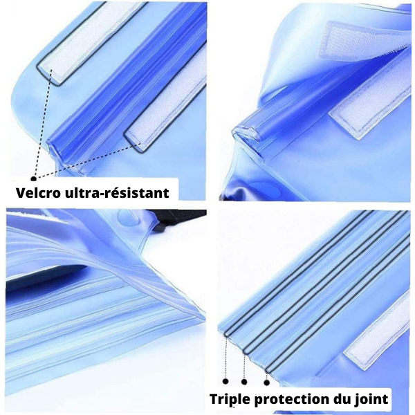 Proteggi i tuoi oggetti quotidiani dall’umidità con una borsa da spiaggia impermeabile per smartphone. Un accessorio Ideale per gli sport acquatici, la nautica, lo sci, ecc.