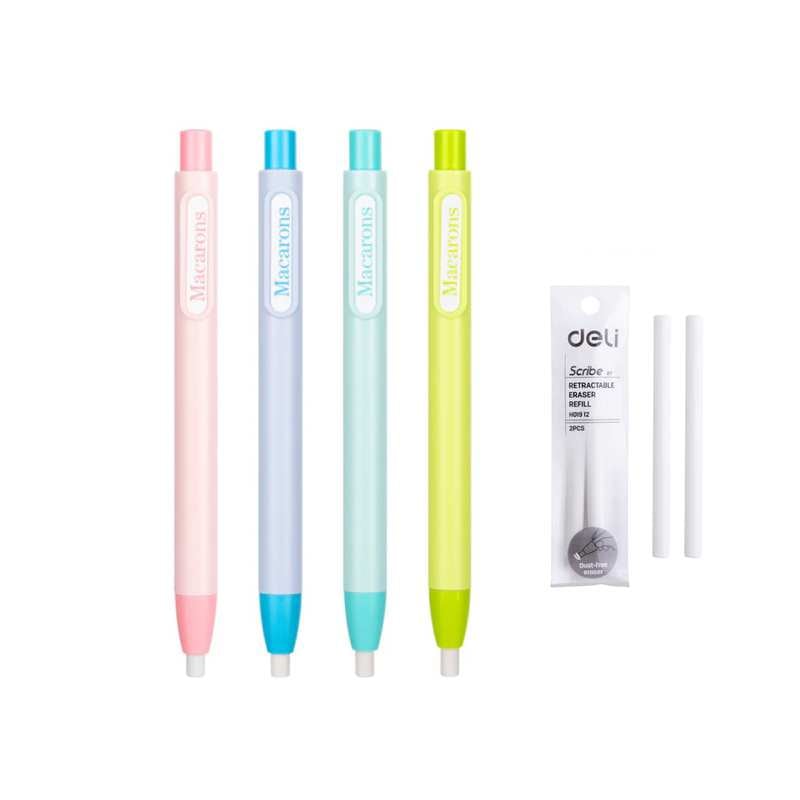 Il penna con gomm è una penna una sfera con gomm incorporata per cancrore male errori. La penna è realizzato in plastica riciclabile e il pennino è a metallo. La penna con gomma è disponibile in vari colorazioni: Nero, Blu, Rosso E Verde.