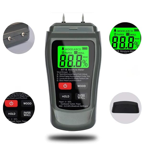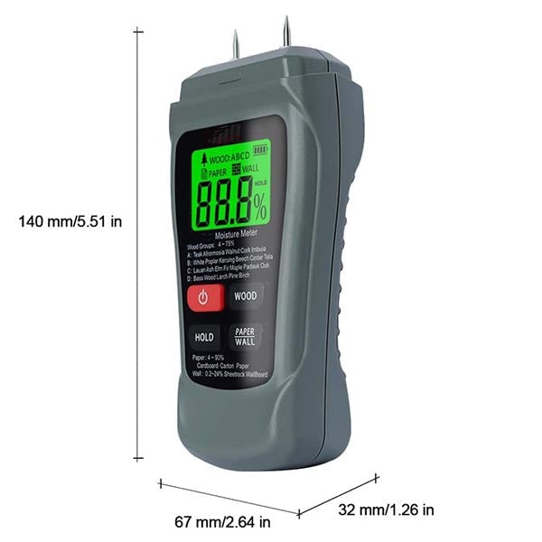 Basta posizionare i due fori sulla superficie da testare. Non esporre il dispositivo alla luce diretta del sole o a correnti d’aria durante la misurazione per evitare risultati errati. Questo dispositivo è eccellente per testare il contenuto di umidità di legno, bambù, carta…. o altri materiali.