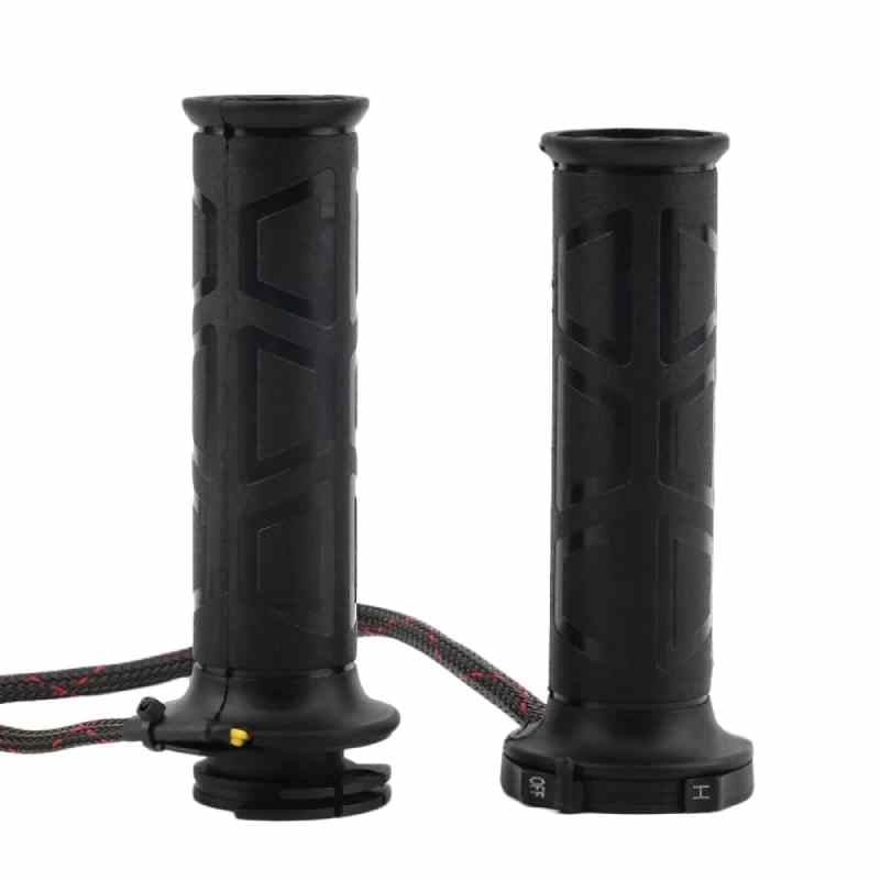 Le manopole riscaldate per moto sono un prodotto completamente nuovo progettato appositamente per i motociclisti. Misurano 130 mm di lunghezza con un diametro di 22,5 mm. Realizzate con filo rosso CC+12 catodi e filo nero CC-12 anodi, queste manopole sono leggere con un peso di soli 221 g. Sono di colore nero e raggiungono una potenza di 12-14 V.