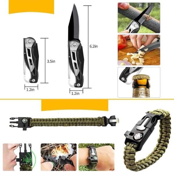 Siete pronti a sopravvivere a ogni tipo di minaccia? Il kit di sopravvivenza d’emergenza indispensabile per essere preparati a qualsiasi situazione! È la raccolta perfetta degli oggetti di base di cui potreste aver bisogno durante le vostre uscite nella natura.