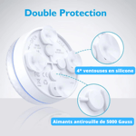 Perla facile installazione, la nostra luce subacquea per piscina presenta due sistemi di montaggio. La ventosafunziona bene su superfici esterne e in acqua. Per quanto riguarda il magnete, è possibile utilizzarlo sul ferro.