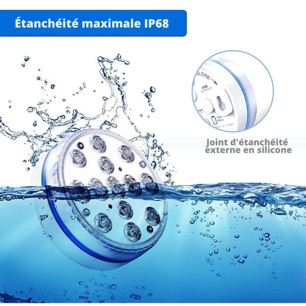 100% impermeabile, questa luce LED ha un design innovativo per illuminarel’interno della piscina. Il suo guscio in plastica termicamente sigillatoimpedisce la penetrazione dell’acqua.