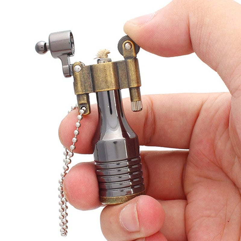 Questo accendino a gas come torciaè un mini accendino a paraffina ed è stato realizzato con materiali di alta qualità. È un accessorio robusto, resistente, antiruggine e di lunga durata. L’accendino non solo è sempre pronto all’uso, ma può anche essere utilizzato come portachiavi. Inoltre, la sua torcia può aiutarvi a illuminarvi al buio. Questo piccolo accendino ricaricabile è molto facile da usare durante una vacanza in campeggio. Assomiglia a un accendino di rame retrò, ma ha una sensazione e una consistenza migliori