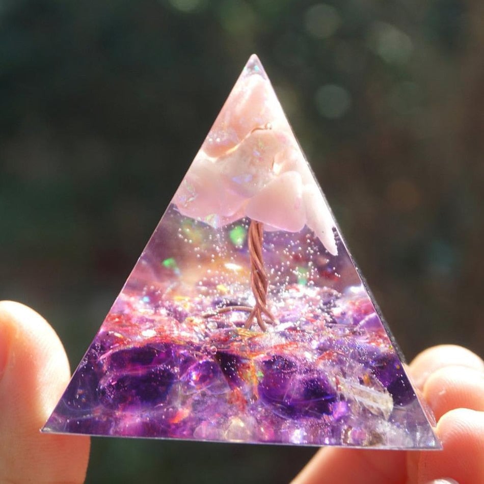 Piramide generatrice di energia in pietra curativa e raccolta di energia positiva.