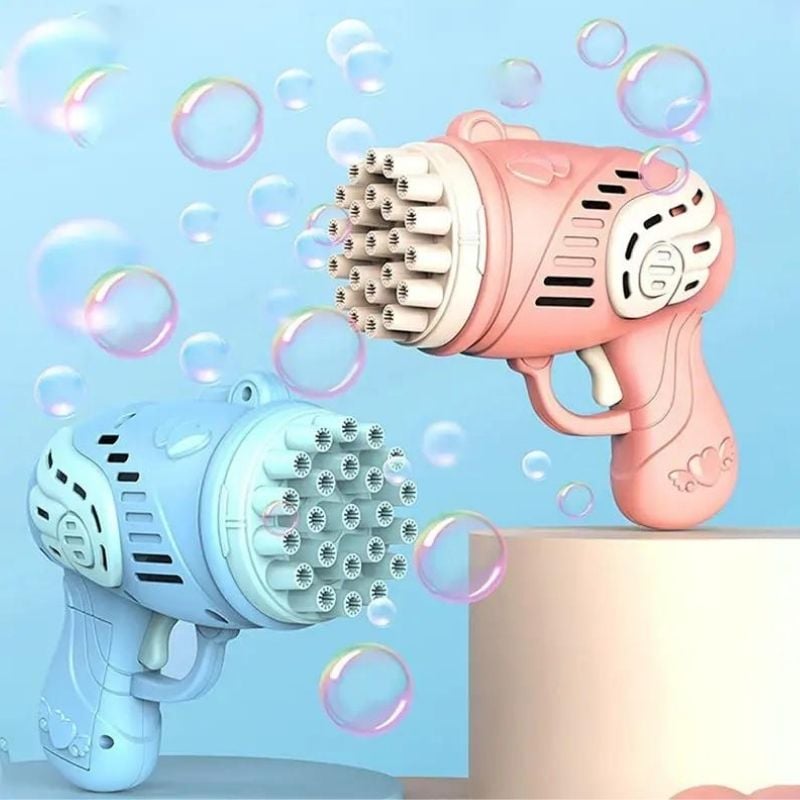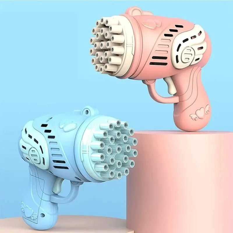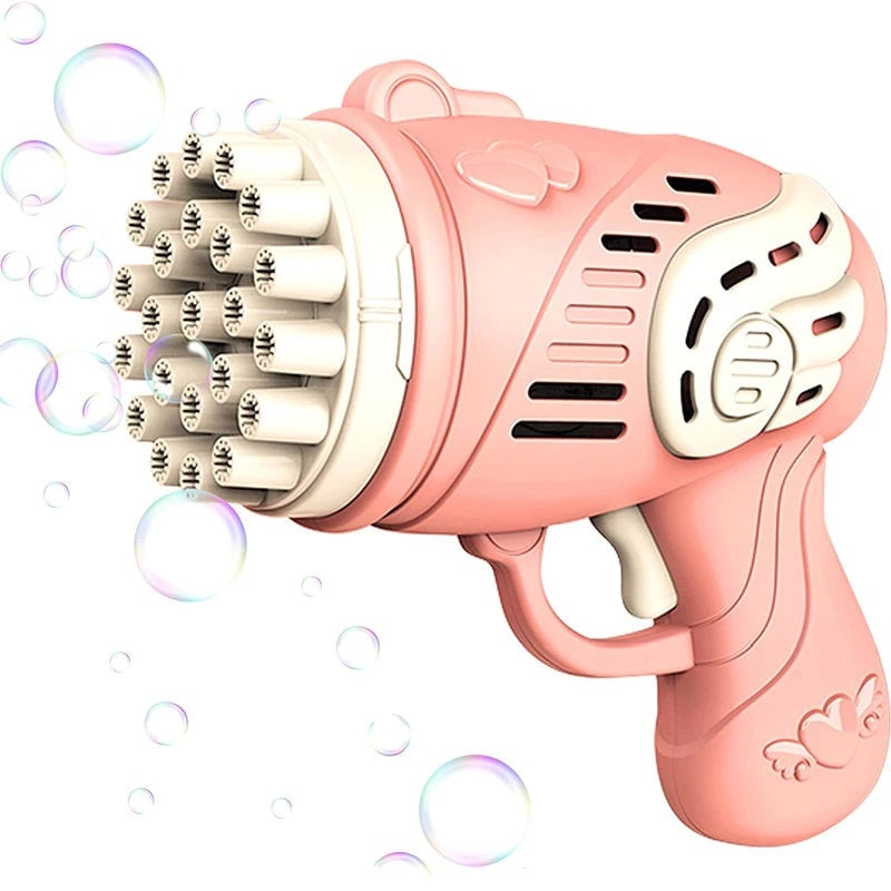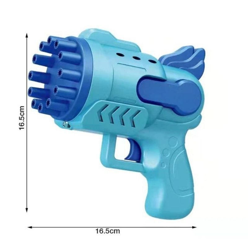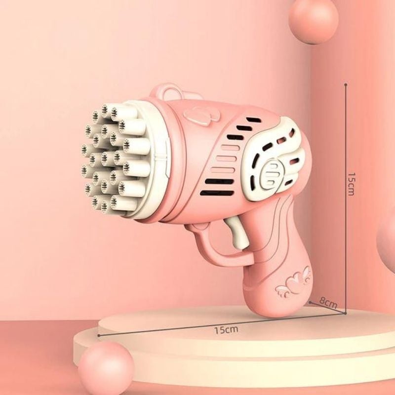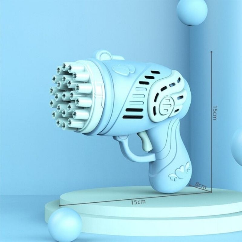 La pistola spara-bolle di sapone è un giocattolo divertente per tutte le età. Spara bolle di sapone in aria e può essere utilizzata sia in casa che all’aperto. Include sapone per bolle e richiede 3 batterie AA (non incluse).