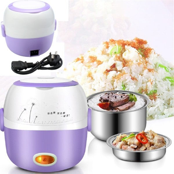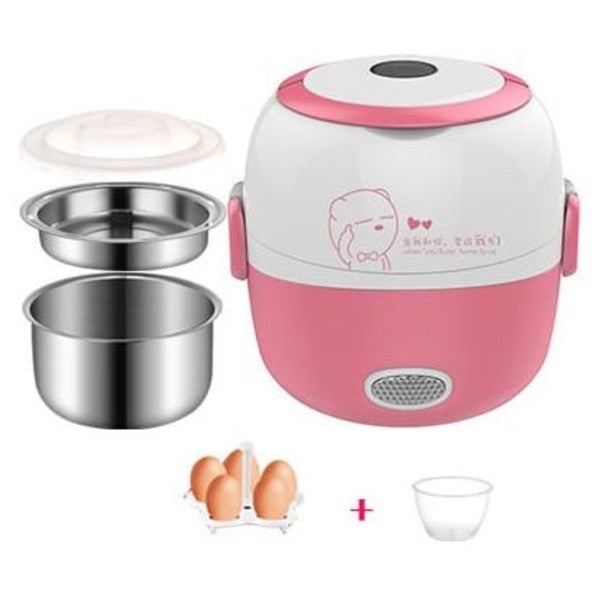 Rispetto ad altri lunchbox, questo è un mini multi-cooker, grazie al quale il cibo può essere cucinatooriscaldato,all’interno, secondo le vostre esigenze. Dotato di 2 piani, quello sulla parte inferioreha una capacità di 1L, mentre l’altro modello, più piccolo, ha una capacità di 0.3L. Una volta che gli ingredienti sono pronti, è sufficiente chiudere la scatola, collegare il cavo di alimentazione e premere il tasto avvio.