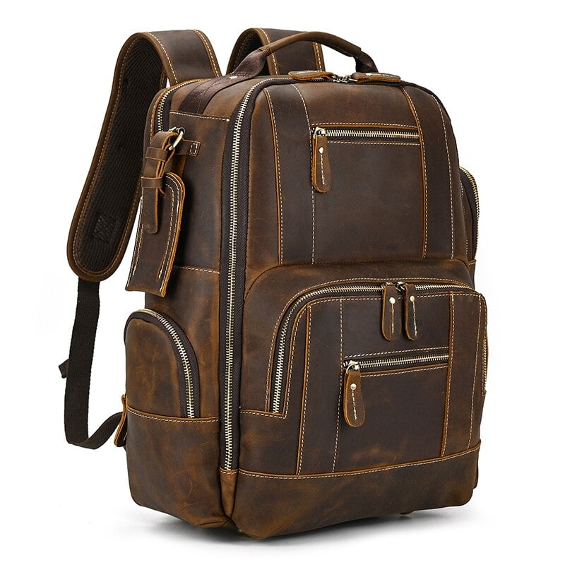 Lo zaino militare in pelle è un modello di accessorio vintage realizzato in vera pelle. È una borsa da viaggio di lusso per il computer di uno stilista. È anche una borsa a tracolla multifunzionale che si può usare sia per viaggiare che per la semplice vita quotidiana. Ha un